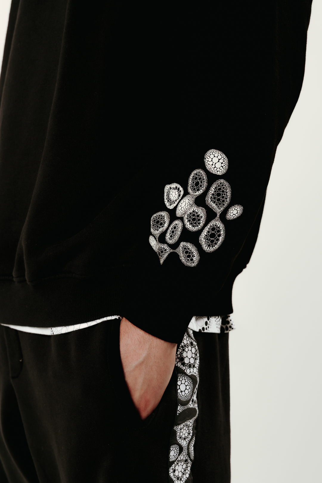 Cotone nero garzato - 330 gr /Il modello è realizzato in Italia / Il modello è alto 187 cm